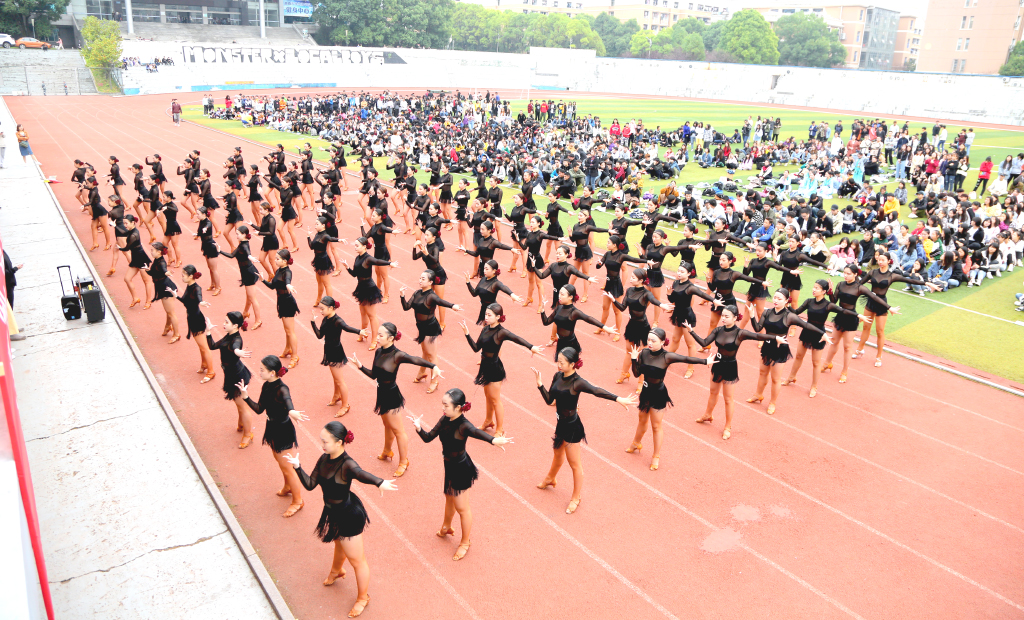 运动场上不仅有着激动,更存在着柔情。由湖南猎鹰技工学校舞蹈专业学生带来的舞蹈节目表演将整个开幕式现场推向了高潮,刚健的拉丁、柔和的中国舞、壮观的集体舞,每一位表演者的动作都在诠释着艺术的魅力,牵引着整个开幕式的脉搏。