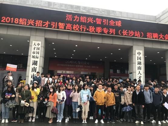 10月15日下午,我校招生就业处与二级学院组织近300人,参加“活力绍兴•智引全球”2018招才引智高校行•秋季专列(长沙站)招聘大会。此次活动是绍兴市委组织的规模最大、规格最高的外出引才活动。