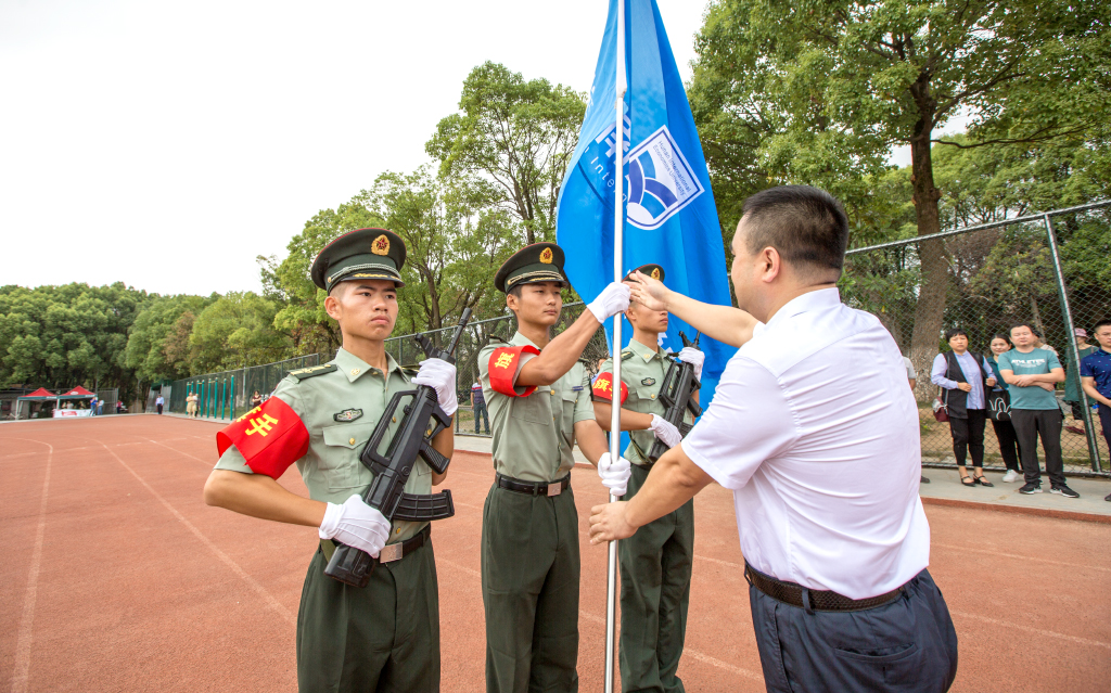 大会在庄严的国歌声中正式拉开了序幕。首先进行的是2017新生军训检阅与总结表彰。陈斌副校长授校旗,王耀中校长检阅方阵,他亲切地向小战士们问候:“同学们好!同学们辛苦了!”,新生们也激动而响亮地回答:“为太阳城娱乐争光!”。之后是分列式,十多个方阵队迈着整齐划一的步伐依次从主席台下走过,用行动向大家展示着他们军训的成果,嘹亮的口号让整个田径场瞬间变得朝气蓬勃。