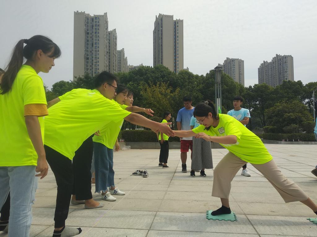 在训练现场,教练首先介绍了拓展训练的由来,再通过一系列的欢快活动,营造团队氛围,建立相互信任的基础。此次活动设置了齐眉棍、激情节拍、有轨电车、孤岛求生、冲出亚马逊等九个极具趣味但又富有挑战的团队项目。队员随机分为五个营队:社会队,超越队,霸道队,征服队,绿叶队。比赛采取积分制,在活动中每队队员全情投入,群策群力,互助互信,积极沟通,充分发挥团队协作精神,克服重重困难,共同完成每一个项目。素质拓展教官们还设置了颇有创意的活动——成长奖励,如玩萝卜蹲、唱跳小苹果、唱歌接力,让整个过程充满欢声笑语,大家玩得不亦乐乎。更值得一提的是,在本次活动中,有一队由辅导员老师们组成的队伍——绿叶队。他们在努力提高自我的同时,还热心帮助其他队的学生解决各类突发状况。