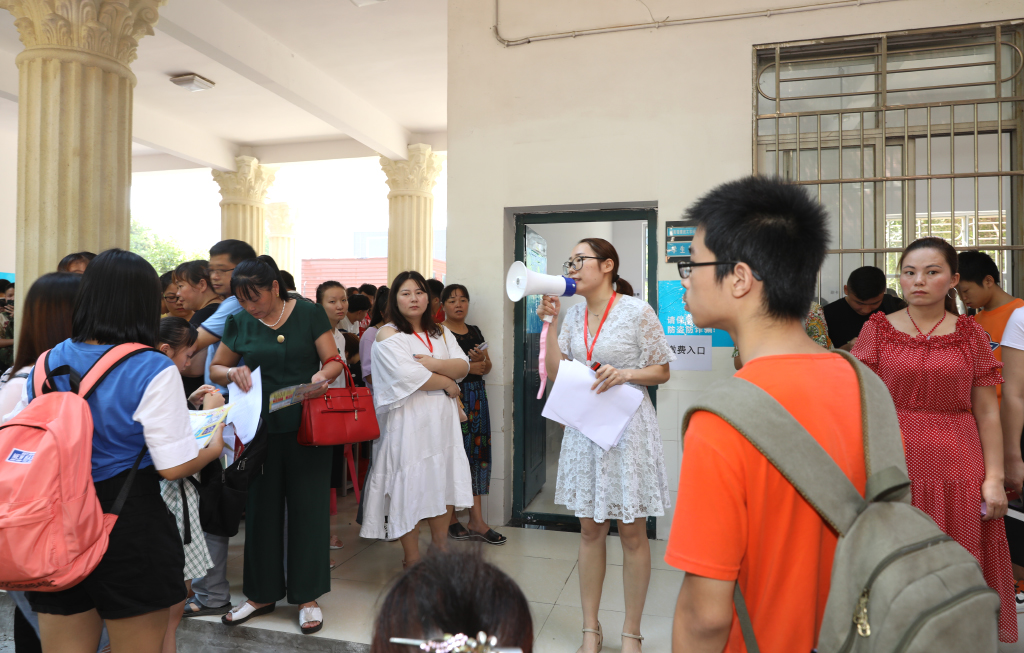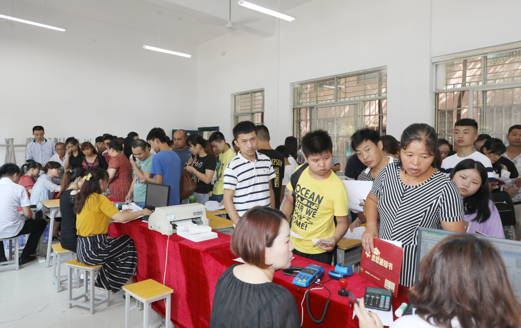 25日上午报到人数较多,场面十分火爆,学生家长出现了排长队缴纳学费的情况,在现场的技工学校校长杨武、书记廖立彬迅速联系财务处等相关职能部门增派人员,及时解决问题,有效减短家长及学生缴费的时间,实现了真正的“直通直达”。