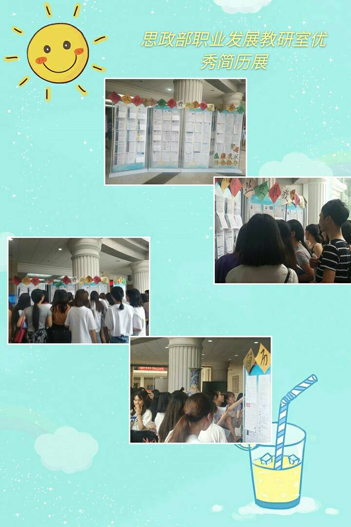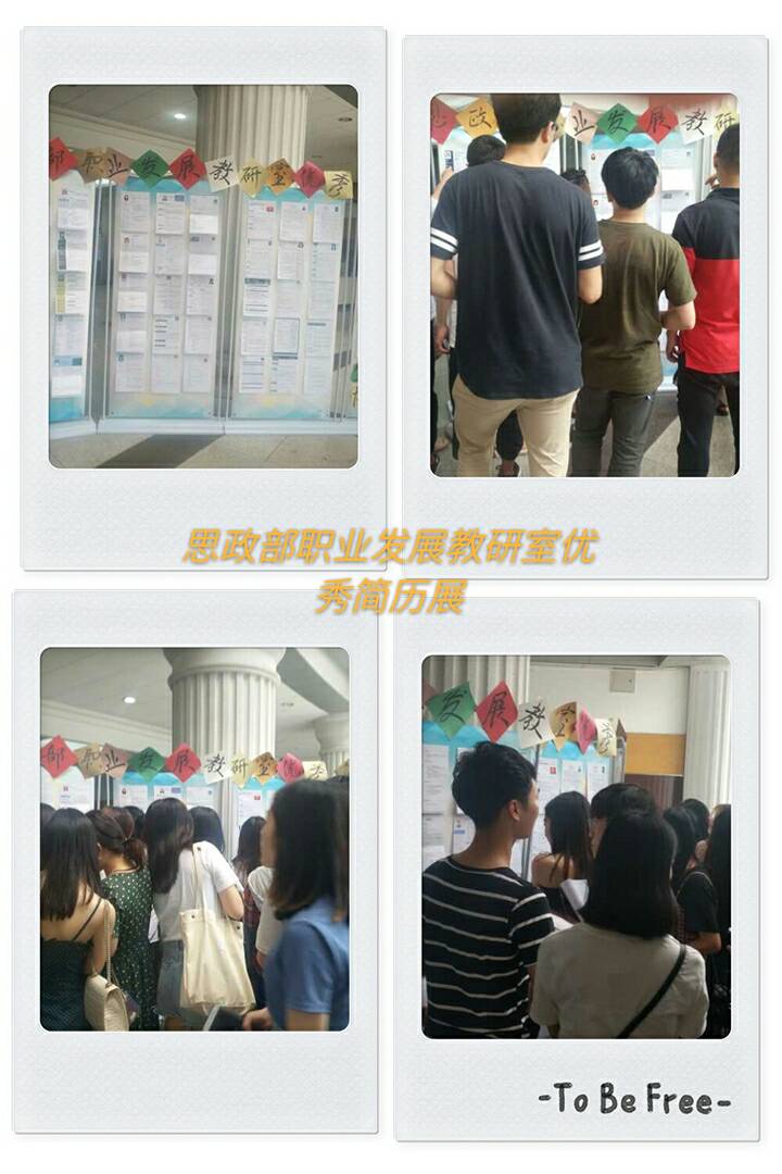 为了持续开辟《大学生职业生涯与就业指导》(二)课程的第二课堂,加强学生求职技能的训练,培养学生符合职业需要的能力素质,提升学生职业胜任力和竞争力,结合本课程的教学特点和教学时间,思政部在前两次优秀简历展览的基础上进一步优化,在结束外国语学院、机械学院、国际教育学院、管理学院等学院的课程教学后,经过了两周的筛选和评比,遴选出四十多份优秀简历,于6月12日开始在图书馆一楼大厅进行为期十天的展览,供同学们参考学习。本次的优秀简历,同学们结合自己的专业特色和求职岗位,精心制作,无论从形式还是内容上,都达到了HR筛选简历的标准,具有创新性。活动的开展受到了学生们的热烈欢迎,去观看的学生络绎不绝,给同学们提供了很好的简历范式,对我校学生就业提供了大力帮助!