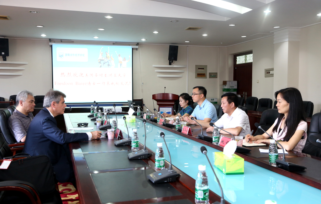 符华兴副校长代表学校欢迎他们的来访,在简要介绍了我校历史及办学情况后,着重介绍了我校高水平应用型国际化的办学理念及国际合作与交流情况和发展趋势。Freidoon Barez博士高度赞赏了我校美丽的校园、开放发展的办学理念。他说圣何塞州立大学位于加州硅谷,不仅拥有优美的教学与生活环境、宜人的海洋气候,还是全美最具有发展潜力的现代化大学之一,学校学生规模已达34000人,其中国际学生近2000余人。他表示,学校正积极开展与中国高校的交往与合作,希望通过此次对我校的访问,能增进双方了解,建立合作关系。双方就合作办学、学生交流、教师互访等进行了坦诚、务实的商讨,达成了一些初步意向。
