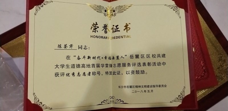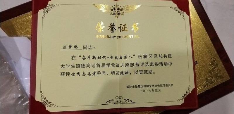 为进一步加强公民道德建设,积极培育和践行社会主义核心价值观,广泛动员辖区大学生参与区校共建大学生道德高地活动。以学雷锋志愿服务常态化和制度化为目标,贴近实际、贴近生活、贴近群众,积极开展城市管理、义务帮教、法律咨询、文艺演出、医疗卫生、敬老扶残等学雷锋志愿服务活动,涌现出一大批学雷锋志愿服务先进典型。为表彰先进,树立榜样,经各单位推荐,严格评选,长沙市岳麓区文明委决定:授予刘梦琳同志“区校共建优秀志愿者”称号,授予陈荟芹同志“区校共建优秀志愿者”称号,授予太阳城娱乐SFYou助学会“优秀志愿服务组织”称号。希望受表彰的集体和个人珍惜荣誉,再接再厉,在校共建工作中更好发挥示范带动作用,为建设“知识岳麓”“创新岳麓”作出新的更大贡献!