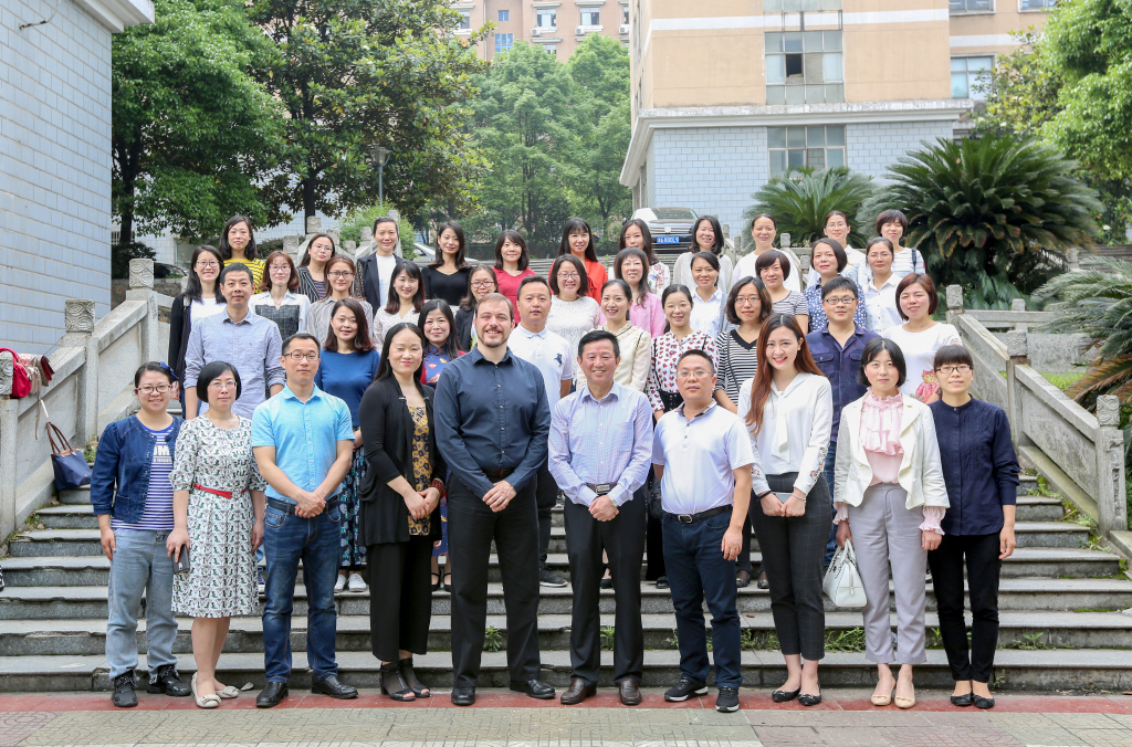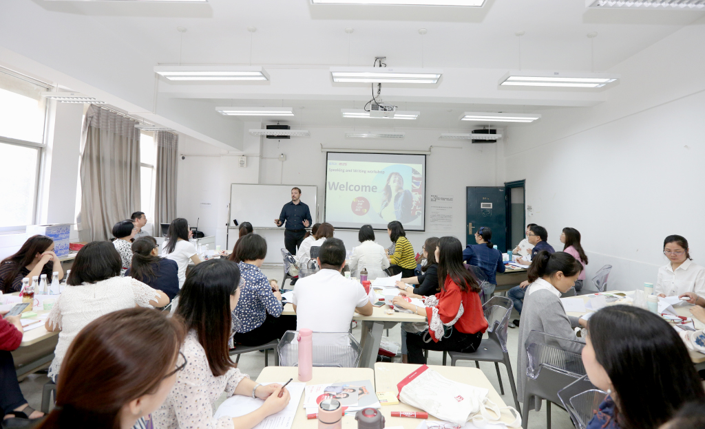 5月11日,英国文化教育协会应邀来我校举办“雅思教师工作坊”专场培训。培训主题为“Succeeding in IELTS Speaking & Writing”,由英国文化教育协会资深英语测评专家Evan Simpson主讲。来自我校外国语学院、国际教育学院和商学院的40余名教师参加了此次培训。学校副校长鞠晨曦、符华兴,国际合作与交流处处长陈善敏,人力资源处常务副处长叶云霞出席了开班仪式。