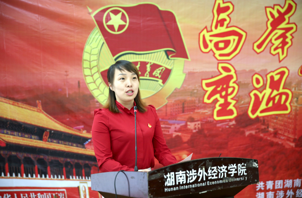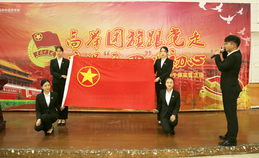为深入贯彻习近平新时代中国特色社会主义思想和党的十九大精神,激励团学干部继承与发扬“五四”精神,我校共青团委员会于5月初在全校团员中开展 “高举团旗跟党走,重温五四明初心”主题活动。4日中午,团学干部宣誓活动在学术讲堂举行。活动由校学生会主席李泽程主持,学生工作处处长邝继红、校团委书记戴薇,以及200多名校级团学组织主要学生干部出席了活动。