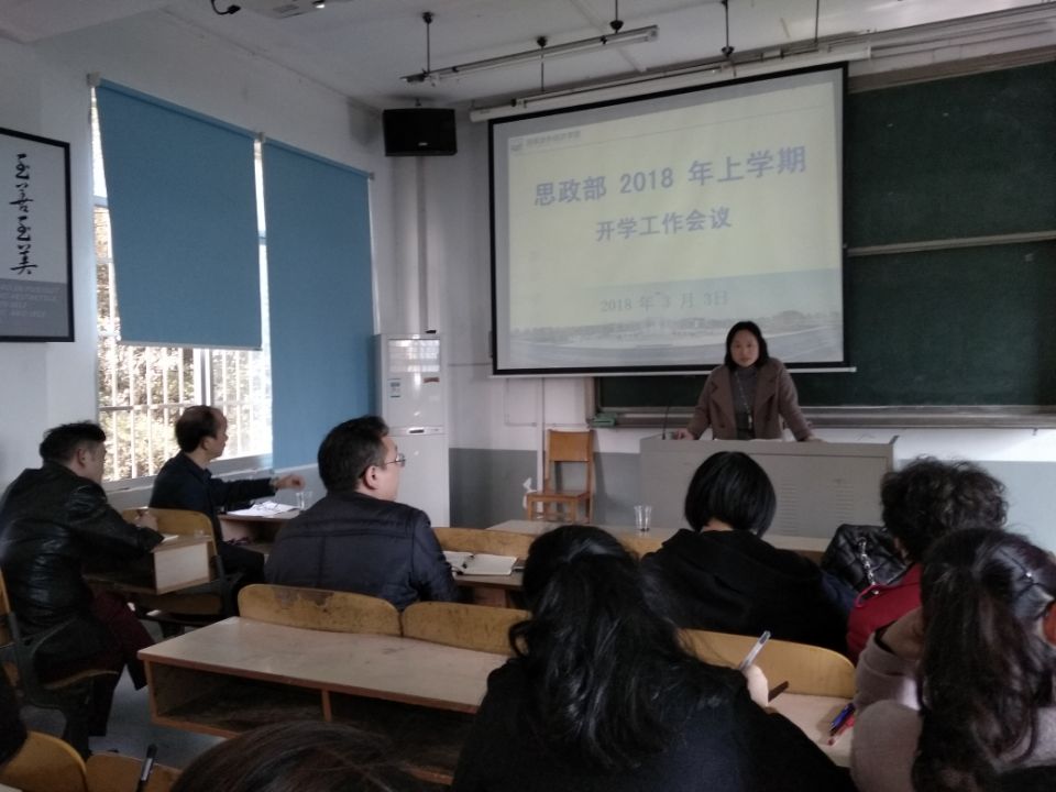 3月3日下午,思政部在1-304教室召开了落实习近平新时代中国特色社会主义思想进教材、进课堂、进师生头脑“三进”工作专题会议,会议由李故新主任主持,思政部全体专、兼职教师参加了会议,鞠晨曦副校长到会指导工作。