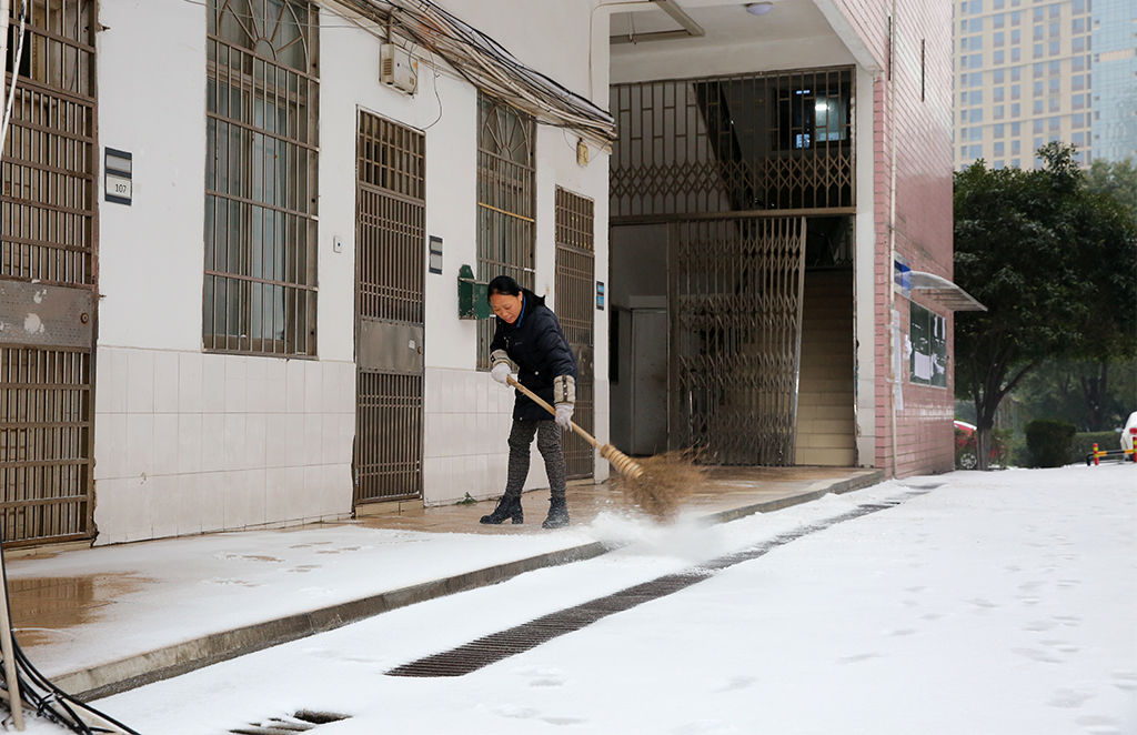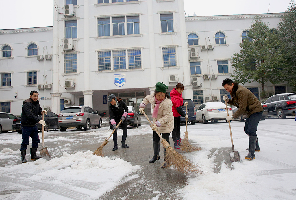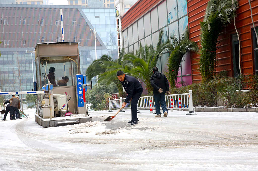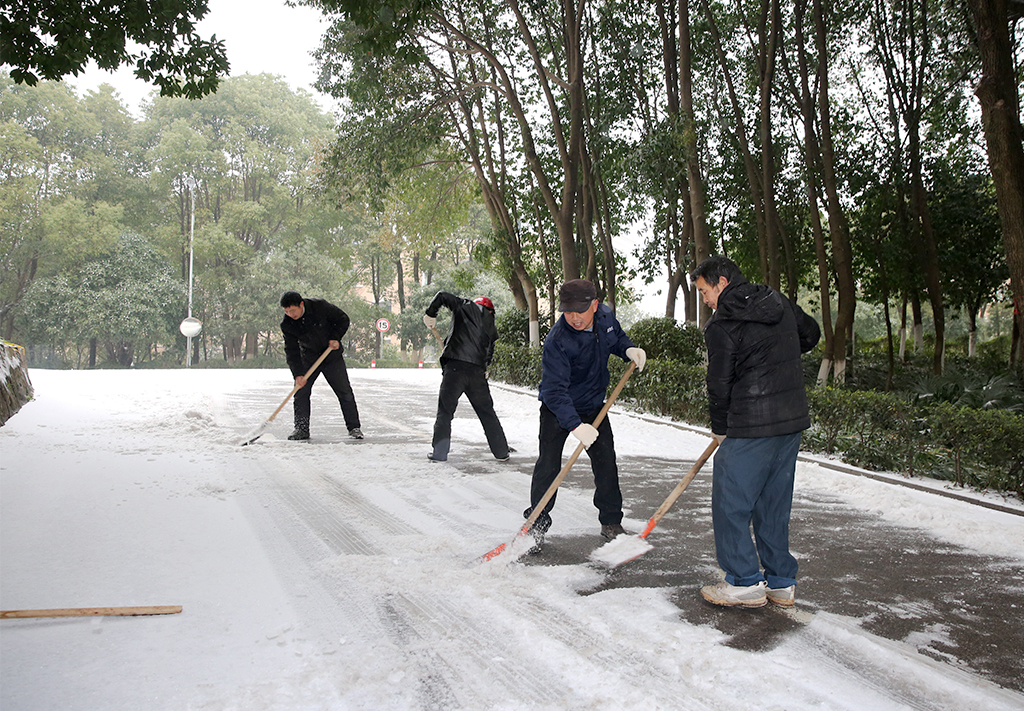 1月26日,大雪覆盖校园,为确保校园的水电和道路交通出行安全, 我校物业公司从早上7:00就开始,出动全体值班人员,不畏严寒在校园内主要交通要道和办公地点,进行积雪的清扫,然后洒上盐, 防止道路冰冻,确保行人和车辆的出行安全。