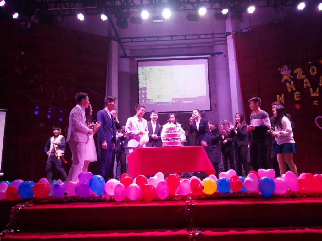 接下来,信息中心全体成员为大家献上了一台精彩的迎新年晚会。本次晚会共有9个节目,信息员的努力也让每个节目都各具特色。舞蹈《Daddy》给晚会带来一个精彩炫酷的开场,由全体信息员带来的《相亲相爱一家人》更引来了一阵阵的呐喊,中间的两次抽奖活动更是让整场晚会欢笑声和喝彩声不断。晚会接近尾声时,信息中心所有骨干成员伴随着《相亲相爱一家人》的歌声,一起推着具有象征性的蛋糕登上了舞台,共同祝愿学生教学信息中心五周年生日快乐。