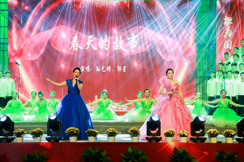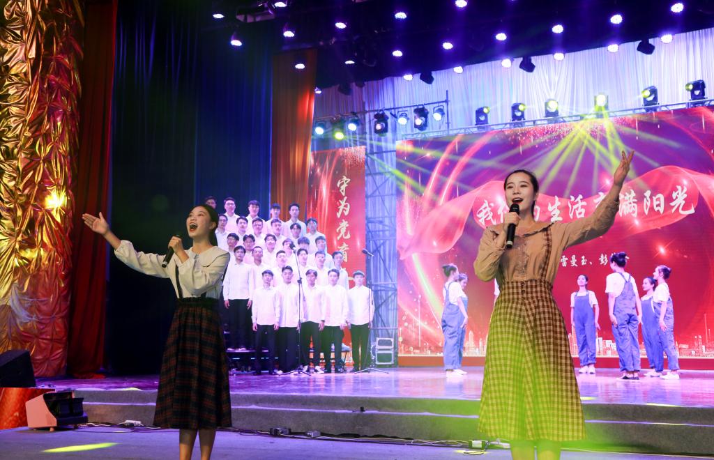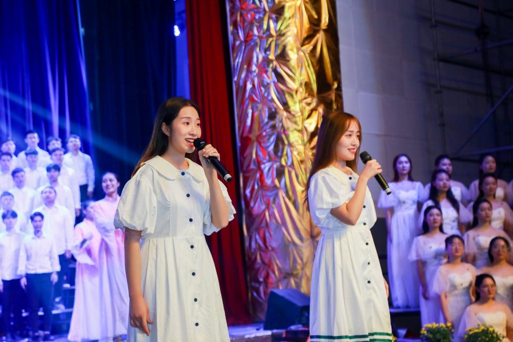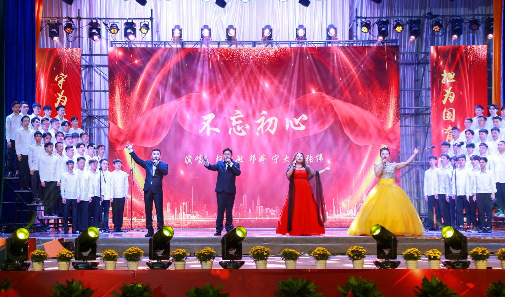 一首激情澎湃的《祖国颂》拉开了迎新歌会的序幕。整场歌会分为“站起来”、“富起来”、“强起来”三个篇章。全体大合唱《没有共产党就没有新中国》,让每个人都重温了中国共产党为中华民族建立的不朽功勋,感受到中国从受到侵略到站起来的自豪之情;一曲《春天的故事》将同学们带回了1979年的春天,仿佛看到了改革开放之初的中国,使同学们对今天的美好生活更加珍惜;“我们唱着东方红,当家做主站起来......”《走进新时代》唱响了第三篇章“强起来”。晚会尾声,全体师生共唱《我和我的祖国》,唱出了满满的爱国之情和作为中国人的骄傲之感,为今晚的歌会画上了一个圆满的句号。