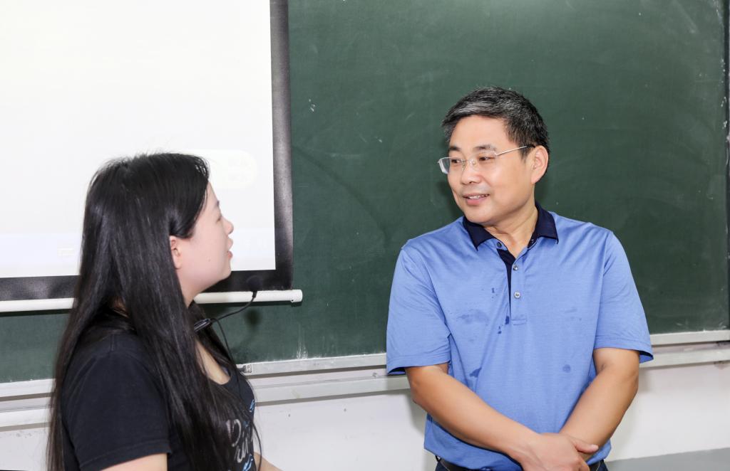 9月9日上午,柴世钦书记来到三教学楼509教室,与商学院金融1703班的同学们一起倾听了商学院彭紫微老师的《金融中介学》课程。课后,柴世钦书记与彭紫微老师就课堂教学进行了深入探讨。彭紫微老师从师生互动、课堂控场、理论性强的课程如何与实践结合等方面向书记进行了汇报说明,柴世钦书记也从提升课程趣味性、学生到课管理、教学方法创新、教学条件的改善等方面阐述了自己的见解,提出了不少建设性的意见。