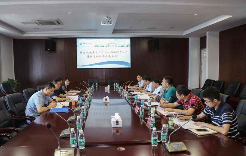 6月28日上午10点,省教育厅刘继伟调研员一行莅临我校,受到我校校长王耀中、副校长陈斌、副校长曹峰举、党政办主任邓青林、教务处处长高金定、财务处处长刘慎、党政办副主任兼工会副主席马洪典等领导的热情接待。双方在新综合楼二楼会议室进行了座谈交流。