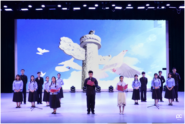 五星社团代表湘流文学社用朗诵的方式献上了一首《新青年赞歌》,抒发了强烈的五四爱国热情。