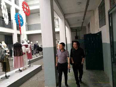 陈祥杰院长陪同陈耕教授参观2019年毕业生服装展
