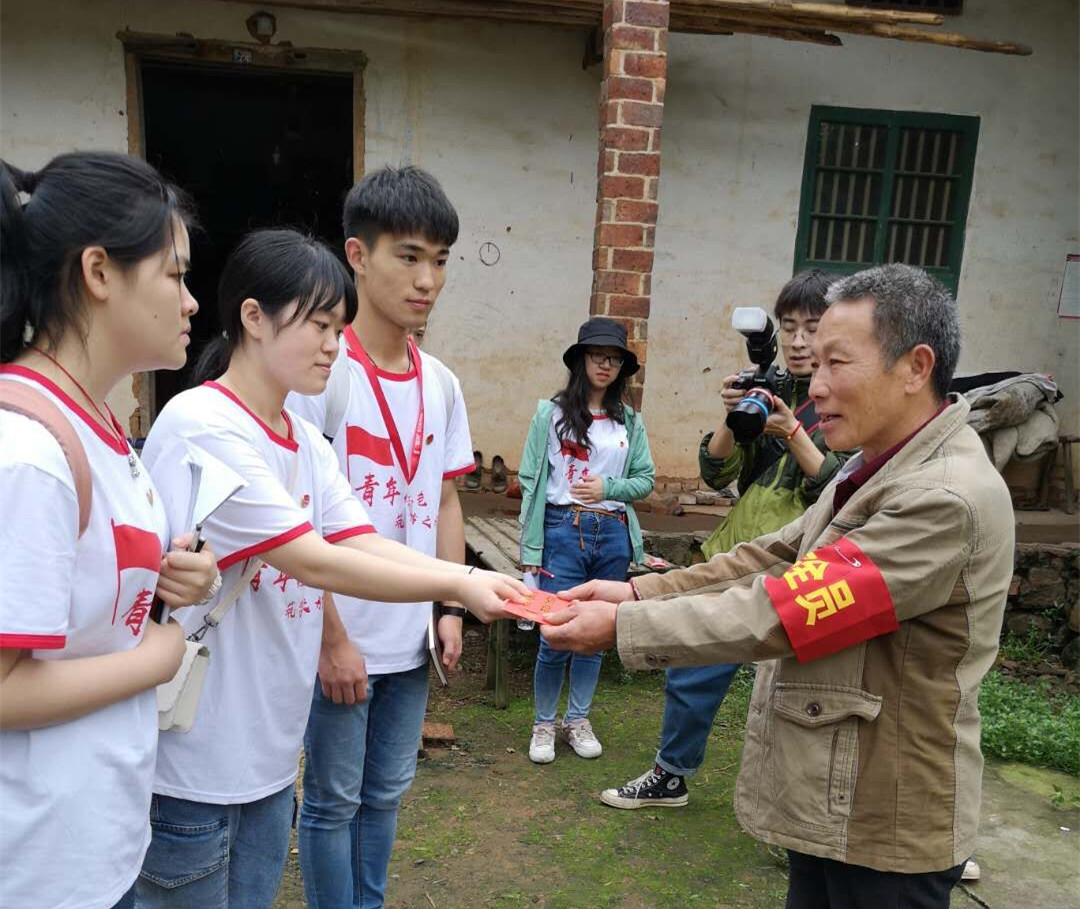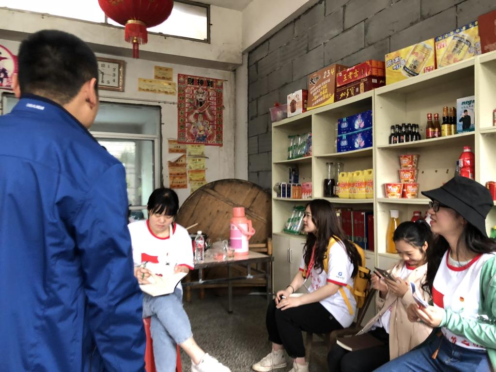 第二天一早,在乌石峰村“90后”党总支书记贺师的引导下,小分队来到村里进行实地考察。沿着村级公路,大家边走边看,边想边讨论,不断完善着方案。四名同学还来到村小开展助学活动。当得知村里还有两家特困户时,大家主动提出要去看望,并送上了慰问金。经过对村里地理位置和结构布局的直观深入了解,以及与村里负责人的交流探讨,同学们整合了更多信息资源,对于下一步运用专业知识帮助村里开展精准脱贫,助力经济发展有了更加清晰的思路和方案。