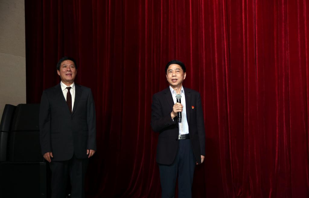 校长王耀中(右)宣布音乐节开幕,音乐学院王跃辉院长(左)主持开幕式