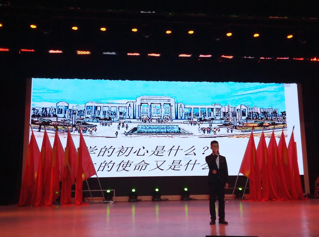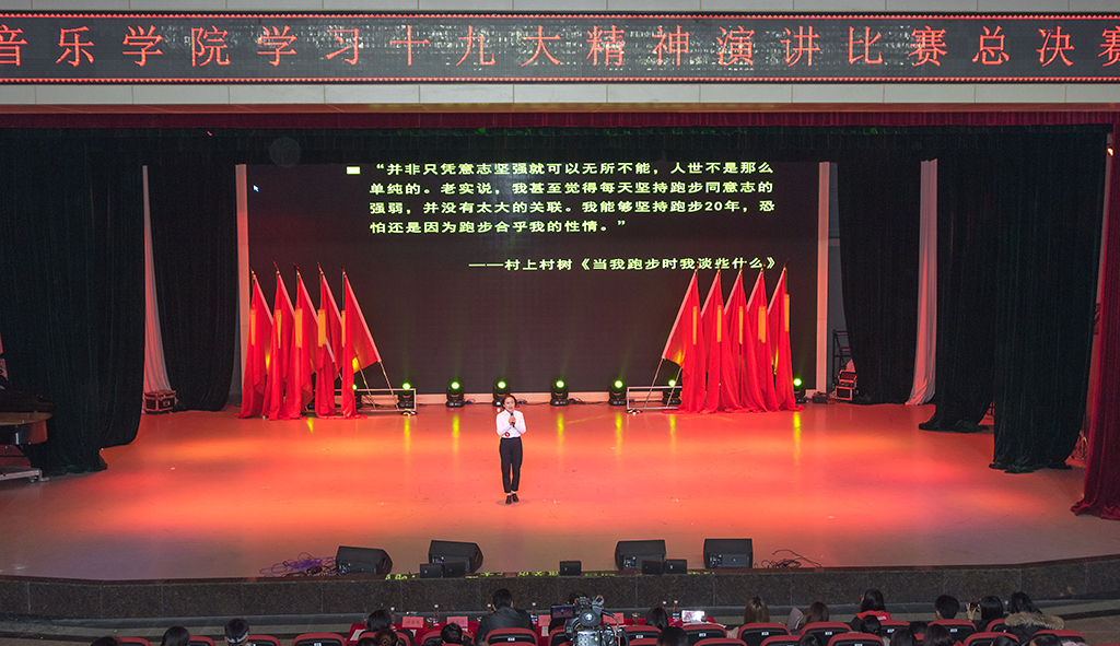 经过初赛以及复赛的激烈角逐,共有9名同学进入总决赛。1号选手阳海蓉的《党心,我心》围绕十九大精神展开演讲,告诉我们在正确的时间要做正确的事。2号选手王琦的演讲题目为《怀着初心前行》,通过一位画家的事例向同学们表示坚定追求,不轻易放弃的决心。随后的手语表演《国家》,用无声的表演再现了我们伟大的祖国和每一个家庭之间血肉相融的关系,更表达了同学们对祖国衷心的祝福。
