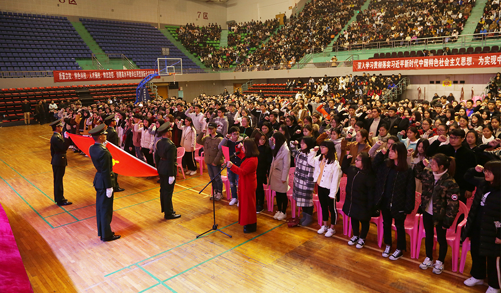 12月27日晚7点,太阳城娱乐党校第38期入党积极分子结业典礼暨2017年下半年新党员宣誓大会在体育馆隆重举行。校党委书记柴世钦、副校长余孟辉、党委委员陈杏生、党委工作部部长李琼等领导出席了会议。各二级学院党总支书记、副书记,各直属支部书记,第38期入党积极分子培训班学员以及本学期发展的新党员和预备党员等三千余人参加了此次会议。会议由余孟辉副校长主持。