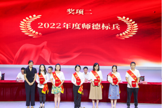 大会开场,全体教师起立齐唱国歌。随后副校长陈斌宣读表彰决定,校长王耀中,副校长陈斌、鞠晨曦、岳艳丽、汪东明、高金定分别为2021年度-2022年度先进基层党组织、优秀党务工作者、优秀党员、2022年度师德标兵、2021年度科研成果奖、2021年度教学竞赛奖、2021年度教学建设奖等获奖教师颁发证书与奖金。