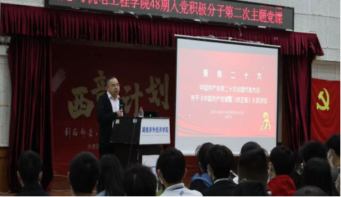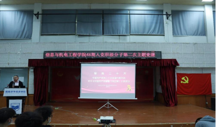 10月31日晚,我校信息与机电工程学院第48期入党积极分子培训班第二次专题党课“深入学习中国共产党第二十次全国代表大会关于《中国共产党章程(修正案)》的决议”于学术讲堂正式开讲。本次党课由信息与机电工程学院党总支书记唐志文主讲,该院第48期全体入党积极分子参与学习。