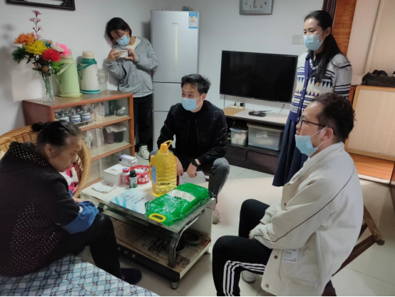 相知无远近,关爱显真情。在锦绣社区党支部谢卓主任的陪同下,我校第一直属党支部副书记万庆伟,支委刘文丰、曹俐、余俊丽一同来到困难老人家中。万庆伟副书记亲手为他们送去了生活必需品米和油。把我校第一直属党支部的温暖送到了困难老人心坎上。