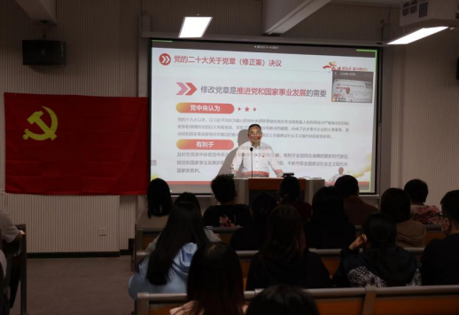11月8日晚,我校2022年下半年预备党员培训班第一课《中国共产党章程(修正案)》于八教205开讲。本次党课由信息与机电工程学院党总支书记唐志文主持,以线上线下相结合的方式同步进行,全校本期预备党员培训班全体学员参加。