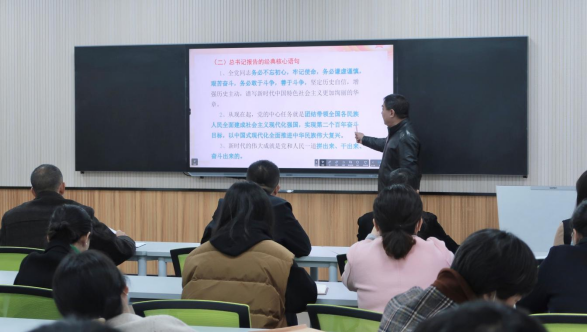 首先,王江浩同志从党的二十大的主题、主要内容、伟大意义以及党中央新的领导集体四个层面引导第四直属党支部全体党员深入学习贯彻党的二十大精神,坚持学思用贯通、知信行统一,切实把会议精神落实到教育教学行动上。