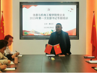 为深入贯彻落实全面从严治党相关要求,有效提高学院党支部书记党务工作能力,推动学院支部工作制度化、规范化、科学化,进一步提高党建工作水平,2月6日,信息与机电工程学院党总支在八教107会议室召开了党支部书记第一次专题培训会。