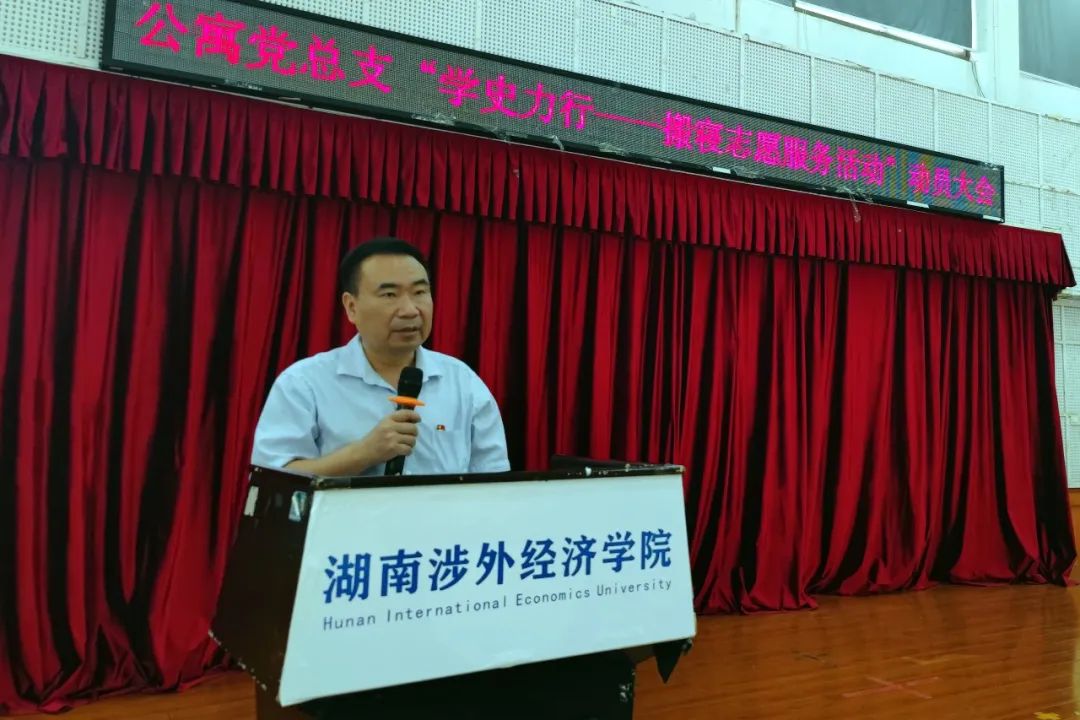 5月31日中午,中共太阳城娱乐学生公寓总支委员会(以下简称:公寓党总支)在学校学术讲坛召开“学史力行——搬寝志愿服务活动”动员大会。园区管委会负责人、楼栋党支部书记、楼栋主任、学生公寓自我管理委员会主要学生骨干等参加会议,学生工作部部长、公寓党总支书记邝继红出席会议,会议由公寓党总支副书记杨建波主持。