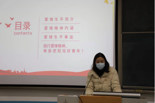 随后,史婷婷给大家带来了一堂学习雷锋精神的生动党课,她带领在场的各位同志一起学习观摩了《雷锋》电影中的三个精选片段,并精心讲解,帮助大家深入了解了雷锋同志的英雄事迹、理解雷锋精神的内涵。接着,她通过具体的雷锋事迹抒发了自己对雷锋精神敬佩且发自肺腑的真情实感。