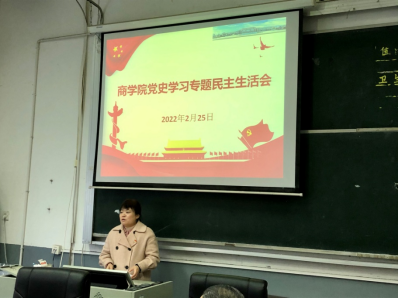 为大力弘扬伟大建党精神,坚持和发展党的百年奋斗历史经验,坚定历史自信,践行时代使命,厚植为民情怀,勇于担当作为,团结带领人民群众走好新的赶考之路2月25日上午,商学院党总支召开了党史学习专题民主生活会,会议由商学院党总支书记唐志文主持,商学院全体总支委员、全体支部书记以及全体辅导员参加了此次会议。