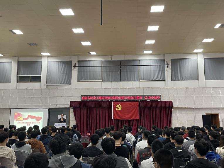 2021年10月26日晚,信息与机电工程学院第46期入党积极分子,于学术讲堂开展了以“习近平新时代中国特色社会主义思想解读”为主题的培训班开班典礼。本次会议由信息与机电工程学院副书记李祥林主讲,信息与机电工程学院第46期全体入党积极分子参与。