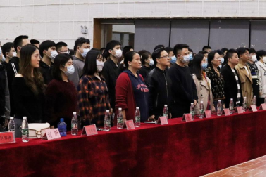 会议伊始,全体与会人员起立,奏唱国歌。
