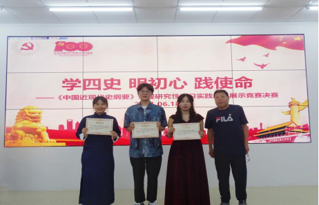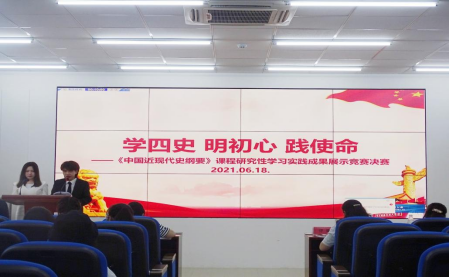 为深入学习贯彻落实习近平新时代中国特色社会主义思想,推动“四史”教育走深走实、入脑入心,在中国共产党成立100周年之际,我校马克思主义学院结合本学期所开设的《中国近代史纲要》课程,在全校开展庆祝建党100周年暨《中国近代史纲要》课程研究性学习实践成果展示竞赛活动。