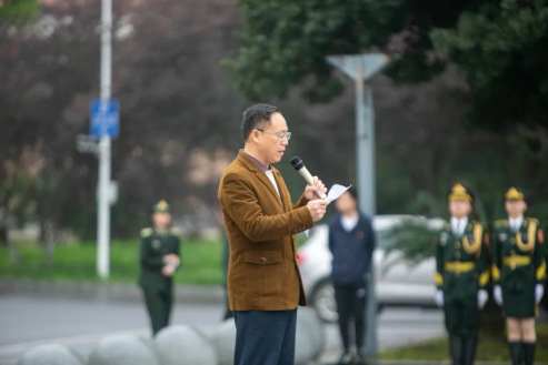 4月6日早上七点,我校信息与机电工程学院在学校北门策划并参与了第六周的升国旗仪式。