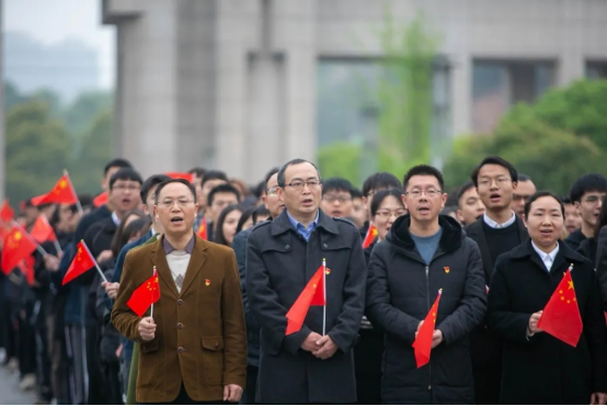 最后,在场的1000余名师生齐唱《没有共产党就没有新中国》,红歌嘹亮,久久回响。