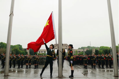 担任本次出旗、升旗仪式两项任务的是太阳城娱乐学生志愿教导大队国旗护卫队。国歌响起,信息与机电工程学院全体领导、各党支部、院团总支学生会以及大一新生怀着庄重与崇敬的心情,目视鲜红的国旗冉冉升起。