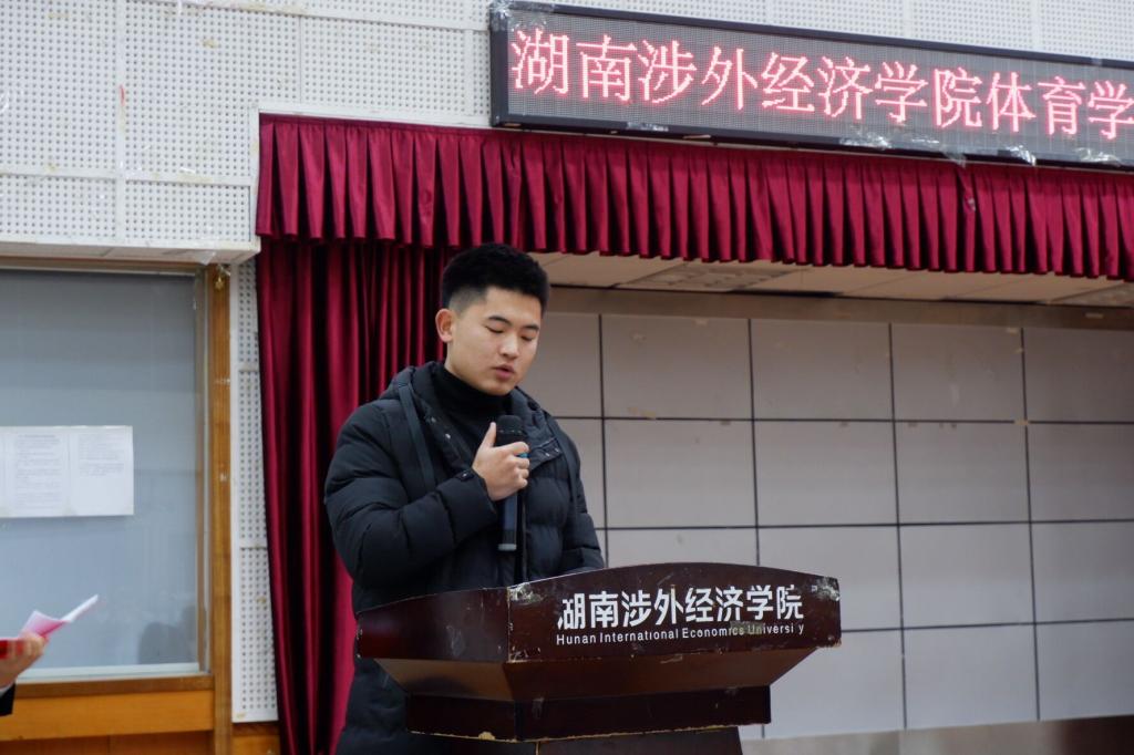 任海巍在发言中回顾了体育学院学生会一学年以来的收获,肯定了体育学院学生会的工作完成情况,同时对学生会下一学年的工作提出了希望。前任学生会主席孔思航总结了上一学年的工作情况,对给予学生会工作帮助的领导及老师表达感谢。他说,学生的工作没有因疫情而中断,反而开展得如火如荼有条不紊,他将自己的工作经验传授给在座的新干部,希望他们青出于蓝胜于蓝,在今后的工作中能够勇担责任带好自己的部门,更好的完成学院下达的各项任务作。来自体育学院的各系主任依次上台对前任优秀学生干部进行颁奖表彰,前任干部也随之将一份份象征着责任与义务的聘书交到新干手中,现场气氛热烈。