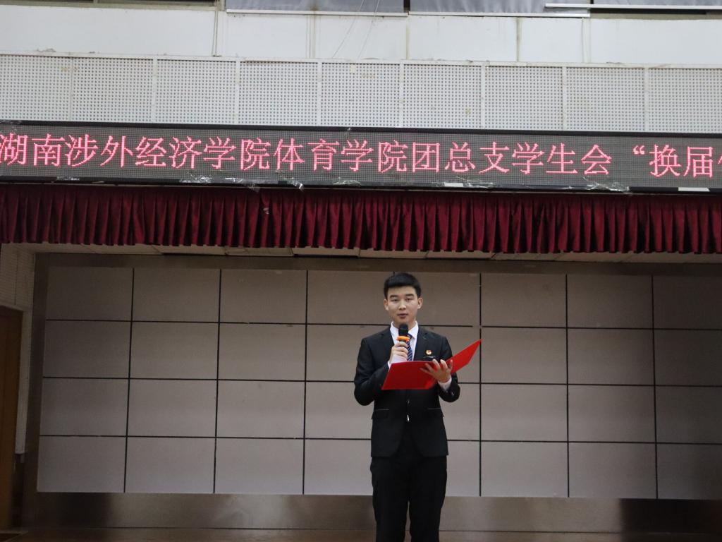 12月10日晚6:40,体育学院团总支学生会换届仪式在学术讲堂举行。体育学院院长谢明,党总支书记陈志明、副书记刘娟,团支部书记任海巍,体育学院各系主任以及年级辅导员代表出席本次活动。