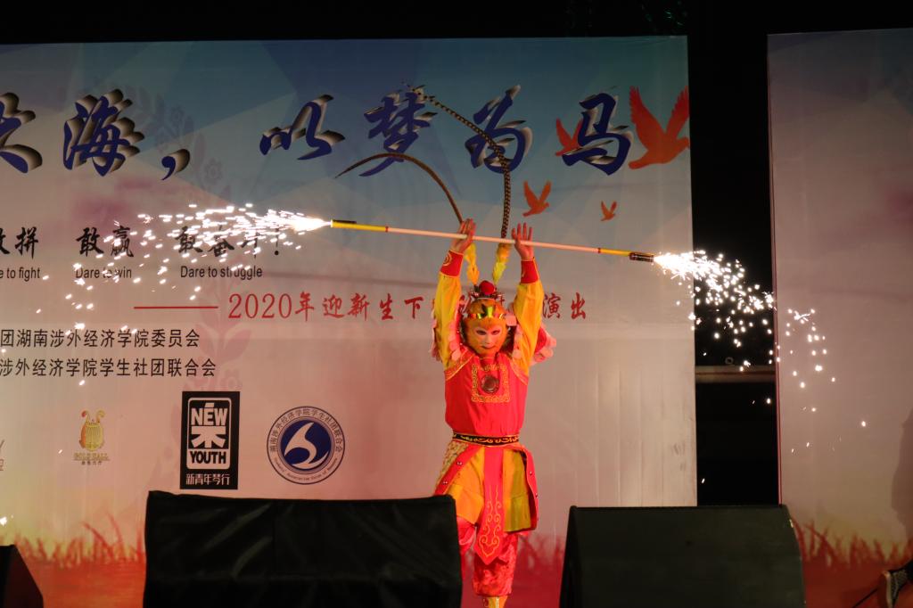 晚会伊始,由新青年乐队带来歌曲表演《海阔天空》。随后,一马音乐社和方舟音乐社带来乐队合作表演《没有理想的人要跳舞吗》,架子鼓与键盘的完美配合,主唱间的默契对唱,瞬间点燃全场气氛;武术协会模仿的孙悟空,手持金箍棒,在一静一动间演绎的火焰秀,更是给大家打造了一场视觉盛宴。紧接着,周子寒同学演唱《突然想起你》,用温柔磁性的嗓音、深情款款的歌声让全场观众沉浸其中,与之共情;NFC街舞社“blackpink”舞团的舞蹈秀《How you like that》,活力满满,魅力四射,更是将现场气氛推向高潮。