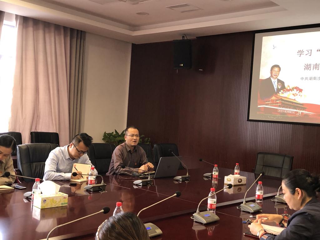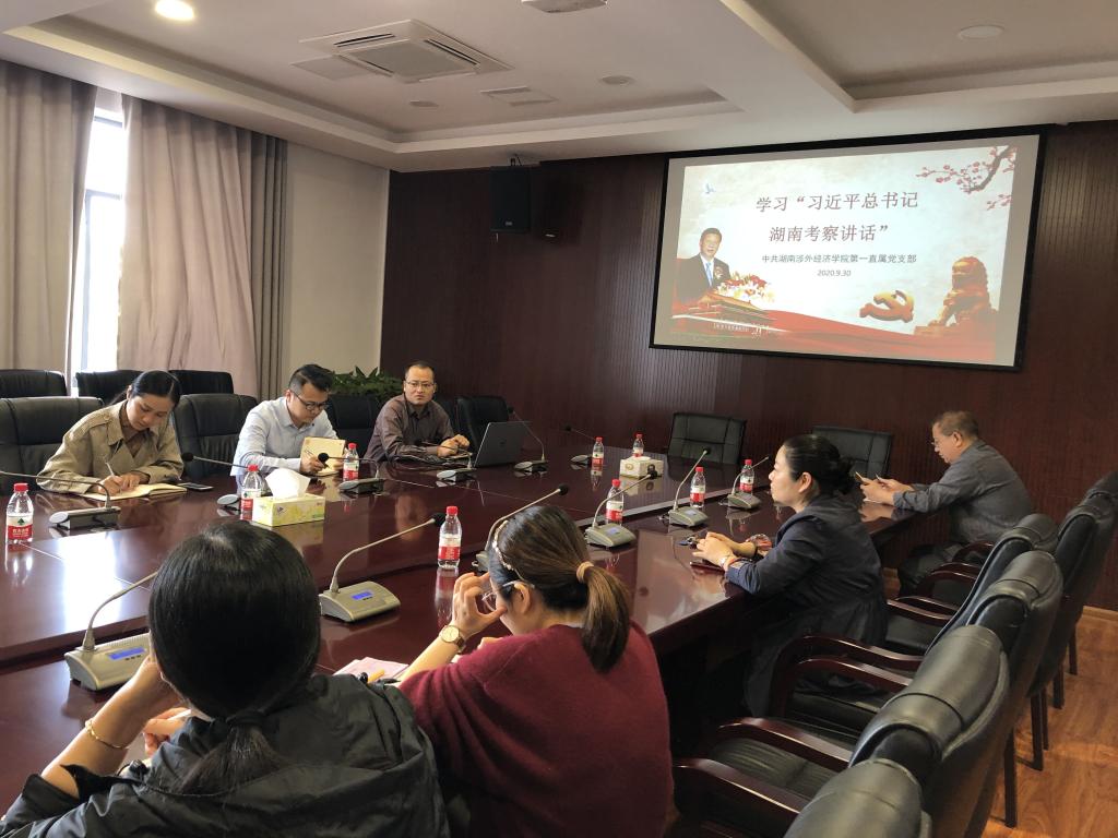 本次学习活动由第一直属支部书记莫新均主持。莫新均从推动高质量发展,谱写新时代篇章;习近平总书记湖南考察“新华视点”微博;习近平在基层代表座谈会上的讲话;习近平湖南行之新提法等四个方面对习近平总书记的重要讲话和指示进行了传达和学习。大家表示,要认真学习贯彻习近平总书记重要讲话和指示精神,进一步加强和改进思想政治理论课建设,全面提高大学生思想政治教育质量,奋力谱写新时代坚持和发展中国特色社会主义的湖南新篇章。
