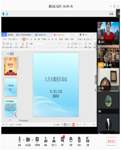 9月13日晚,人文艺术学院第三教工支部利用腾讯会议软件线上开展了“敢为天下先,爱拼才会赢”九月主题党日活动,会议由支部书记姜美同志主持,教工党员在线参加了会议。