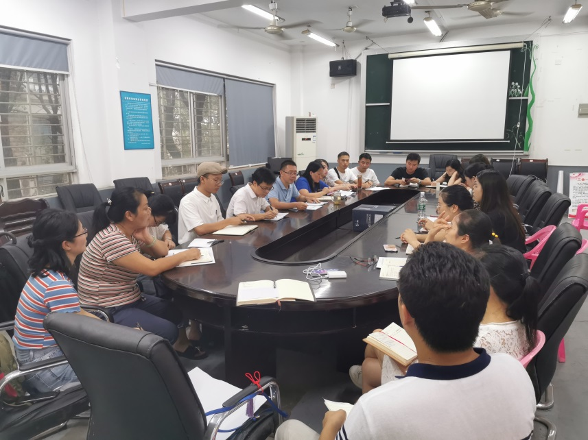 在四位新进辅导员的自我介绍后,廖立彬书记简要介绍了学院的师资力量、教学特色以及学工队伍的情况,要求全体辅导员不断提高政治素质和专业素养,把学院的学生工作做出特色。各位学工干事随后对开学初的各项工作进行了详细的安排布置。