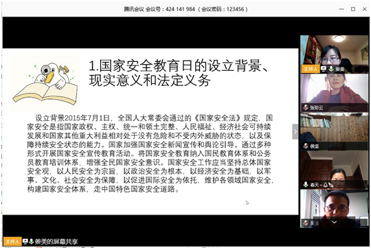 4月23日下午4点,人文艺术学院第三教工支部线上开展四月份主题党日活动,会议由支部书记姜美老师主持,支部全体党员老师都在线参加了会议。