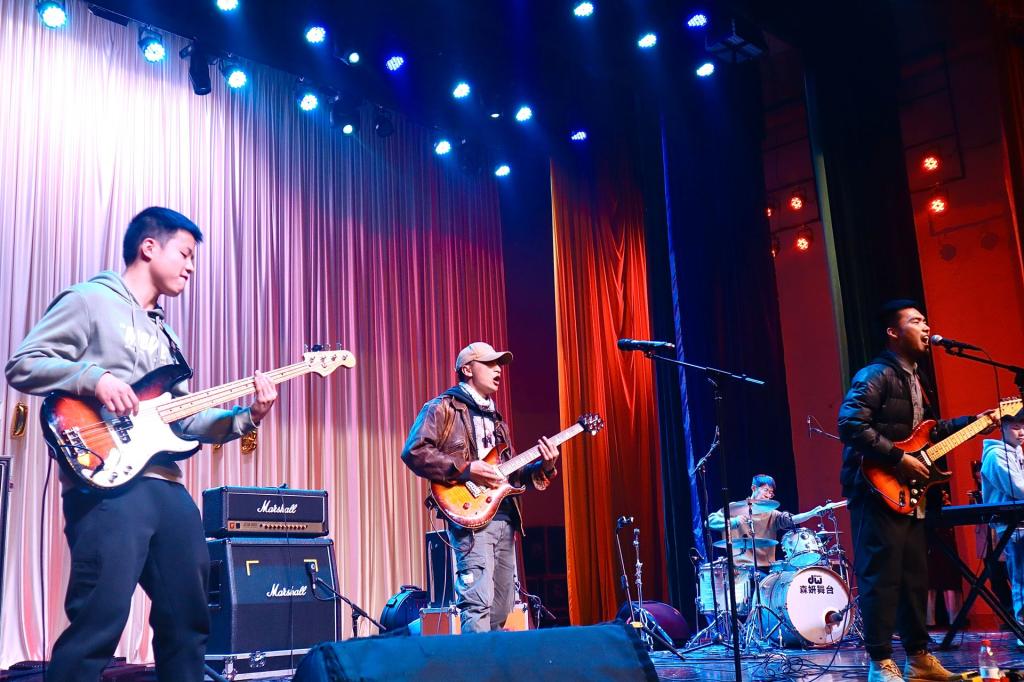 晚会开始,首先登场表演的是“流水线”乐队,作为我校“本土”乐队,他们从建立之初便备受关注。率先登场的他们表现出了丝毫不弱于老牌乐队的气势,用反叛性极强的朋克摇滚嘶吼出反战爱国的高歌。随后来自新青年琴行的“ALL IN”乐队登台表演,他们演唱了《电音少女》、《我们的世界》和《海阔天空》三首歌曲,《海阔天空》在他们的改编下独具特色,拉近了与观众的距离,点燃全场气氛。方舟音乐社新干肖子源以一首Rap歌曲《Get sauce》展现出了方舟音乐社的激情与活力。而两位音乐界说唱新生硬核代表人物Seven赛文和网易音乐人SAM先后登台,诉说着“凛冬”中的热情。最后压轴的是今年九月成立的“Nether Realm地府”乐队和老牌乐队“Over Abyss”,他们用歌声激励人们奋进,鼓励人们为梦想拼搏。