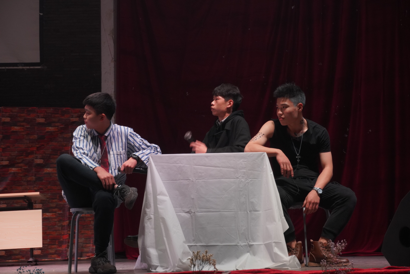 晚会在音乐学院张恒铭带来的歌曲《我的身旁是一扇亮了又暗的窗》中揭开了神秘面纱。话剧表演正式开始。首先,19级表演系万萱和吴宗儒演绎话剧《破旧的别墅》,两个主角隐藏真实身份进行着斗智斗勇的交锋,讲述了一个“你和深渊的凝视,眼见不一定为实”的故事。周旋、猜忌等色彩让现场观众惊叹不已。随后,上演的是19级表演系邓景鸿、王俊儒及叶沛阳带来的《Midnight》。剧中抢劫犯、毒贩利用坏掉的手表合伙对杀人犯进行心理暗示,导致其以为永远等不到十二点而冲出房门被警察击杀。剧末给毒贩和抢劫犯留下一个开放性的结局,让观众可以细细品味。紧接着17级表演系郭子豪、18级表演系陈国洋、向知能,19级表演系王子聪、陈文杰,19级金融系毛鑫桂及19级社体系潘沼宇带来改编话剧《空中花园谋杀案》。剧情围绕汪总死亡展开,体现三队人马渴望得到“空中花园”而做出的一系列荒诞的行为,最终知道汪总没死而诠释了两种结局。幽默又带有悬疑色彩的剧情令观众深入其中,现场笑意蔓延。