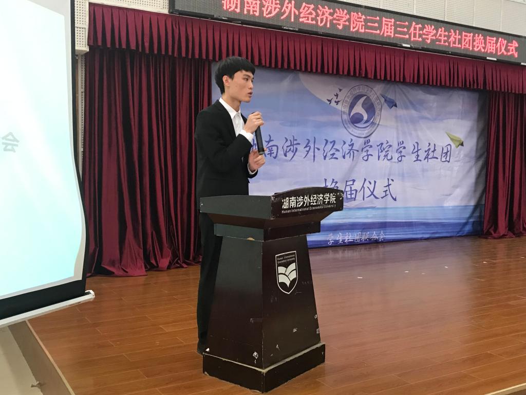 校团委副书记刘佳在致辞中对所有为社团工作付出的人表示感谢,对新鲜血液的到来表示欢迎并寄予期望。她表示:一个社团负责人要有创新有成果,工作上不花费95%以上的精力,那么这个社团是不漂亮的。改变的同时要精益求精,精细管理,精细领导,精品传承。随后,三届三任学生社团联合会实习主席万卓也表示社团之路任重道远,但社团人会不负众望,砥砺前行。