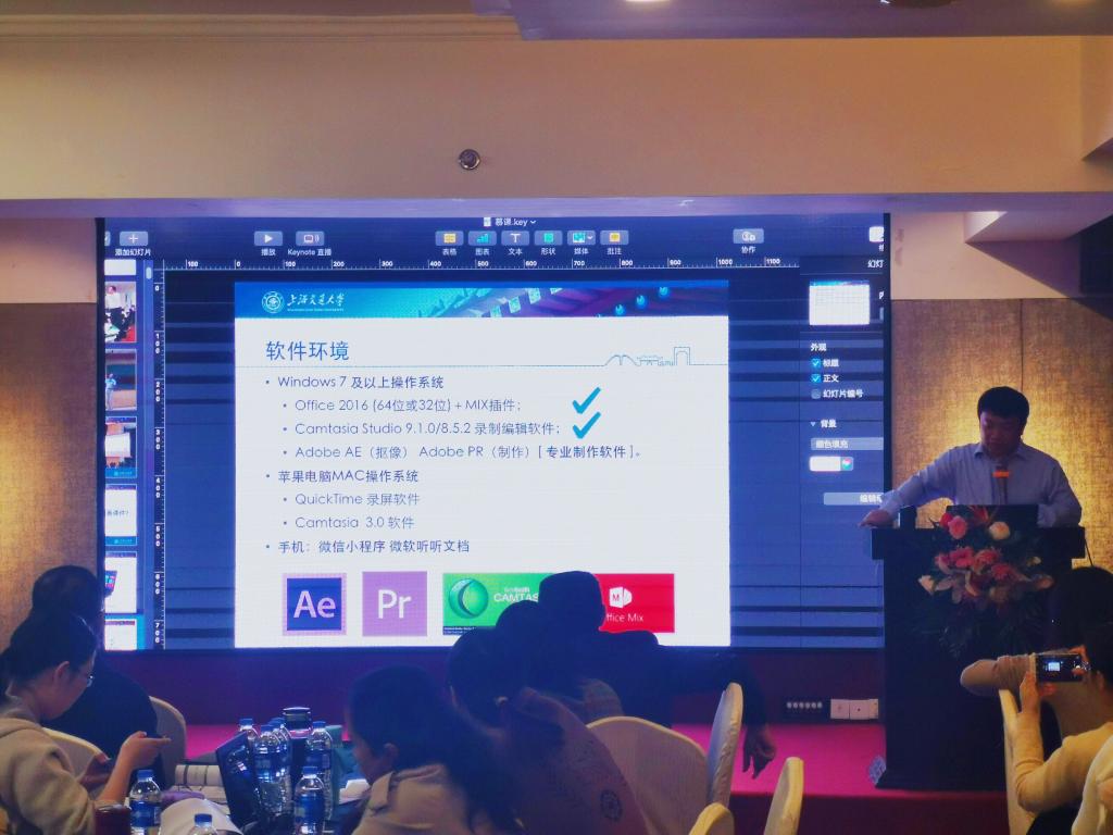 本次培训为期三一在,采取工作坊的形式开展,内容涵盖金课的教学设计、线上金课的课程视频设计、线上金课微视频制作、虚拟金课课程设计与制作、线上金课的教学运行、线上线下混合金课、四位一体课堂教学设计等。上海交通大学教务处在线课程负责人余建波老师应邀担任主讲。授课中,余老师将慕课设计理念与实践相结合,通过理论讲解、分组课程设计、课程案例分享、现场实践指导等环节,进一步加深了参训教师对线上、线下、混合金课建设的认识,使大家掌握了更多的教学理念与方法。