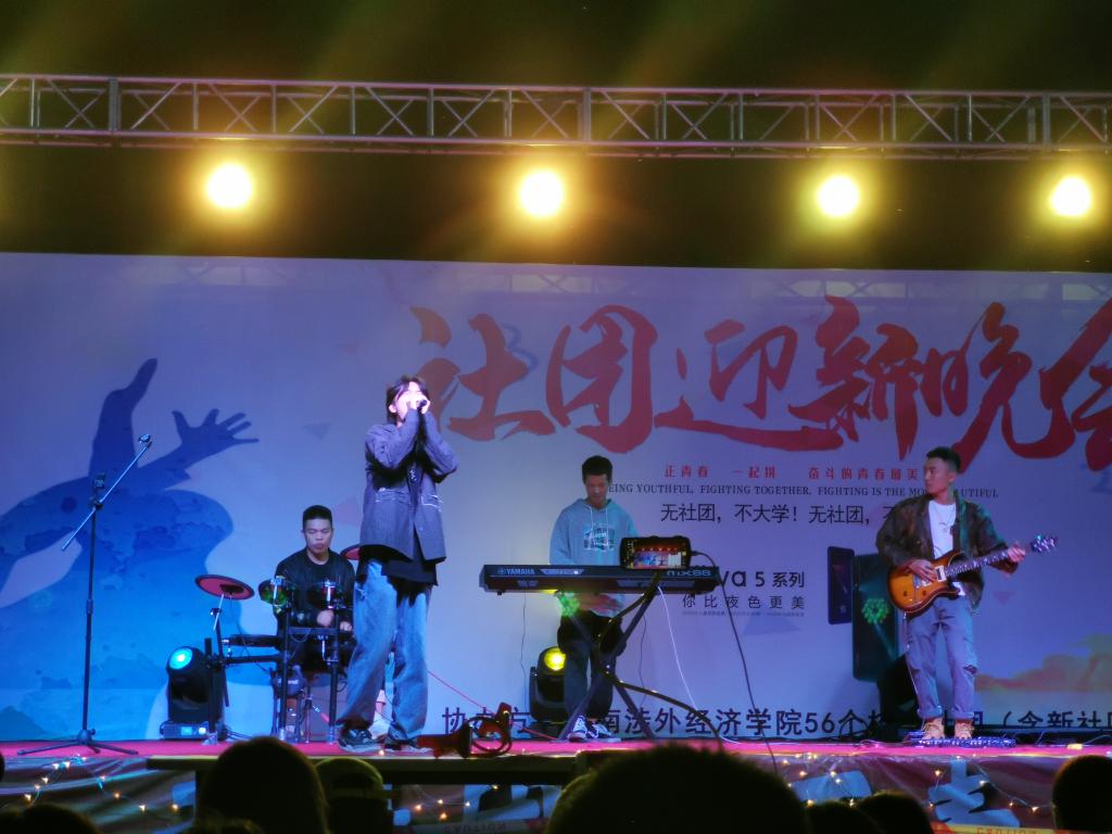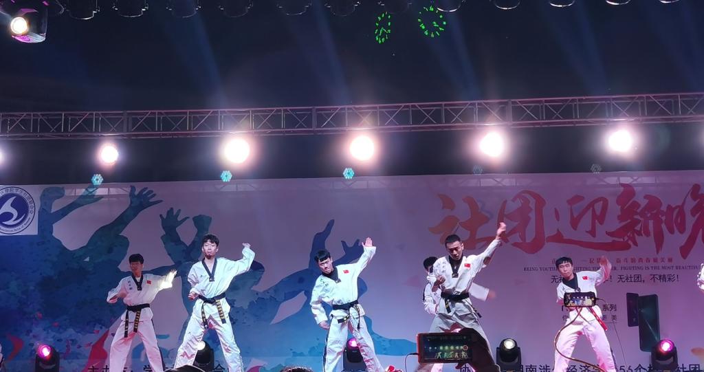 18日晚7点,社团迎新晚会于田径场举行。歌舞、话剧、跆拳道、武术、乐器联奏等精彩的节目汇聚成一场无与伦比的视听盛宴。方舟音乐社的《Butterfly》勾起大家的童年回忆;武术协会的《精武之道》和炫武跆拳道协会的《Play》把中华礼仪之邦的特点展现得淋漓尽致;smile轮滑社则为我们带来了一曲充满动感的轮舞,他们在舞台上舞蹈行动,阵列变换间挥洒转换自如,让观众惊叹。最后,一马音乐社带来的一首深入人心的《Don't break my heart》,为本场晚会划上了圆满的句号。