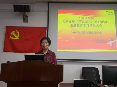 白解红副校长认为外国语学院党总支对主题教育活动高度重视,认真准备,精心谋划,充分体现了校党委对此次主题教育的各项要求。全体教工党员应在工作中守初心,担使命,找差距,抓落实,充分发挥党员的先锋模范作用,努力办好人民满意教育,做细做实,引向纵深,向新中国建国70周年献礼。